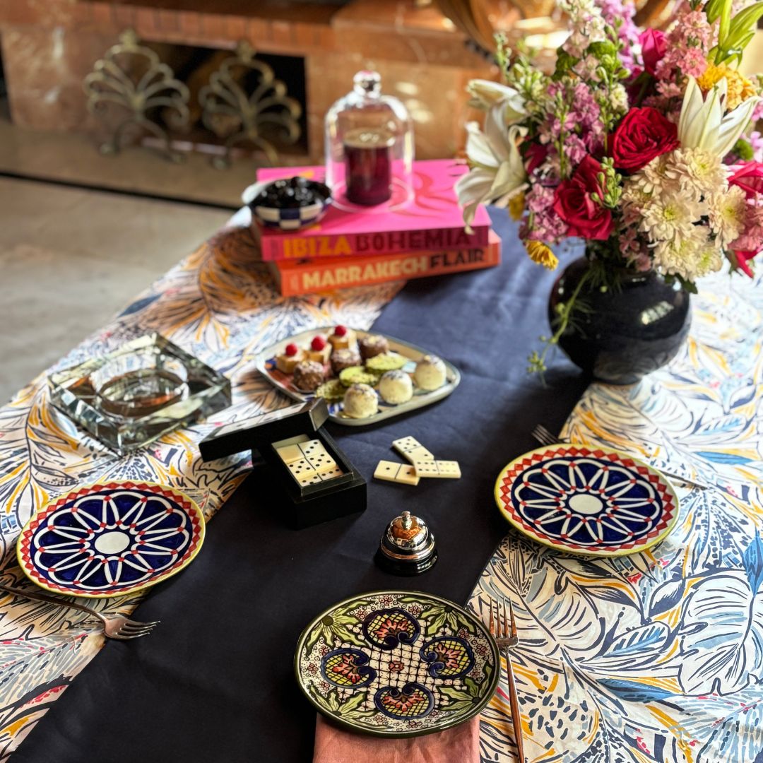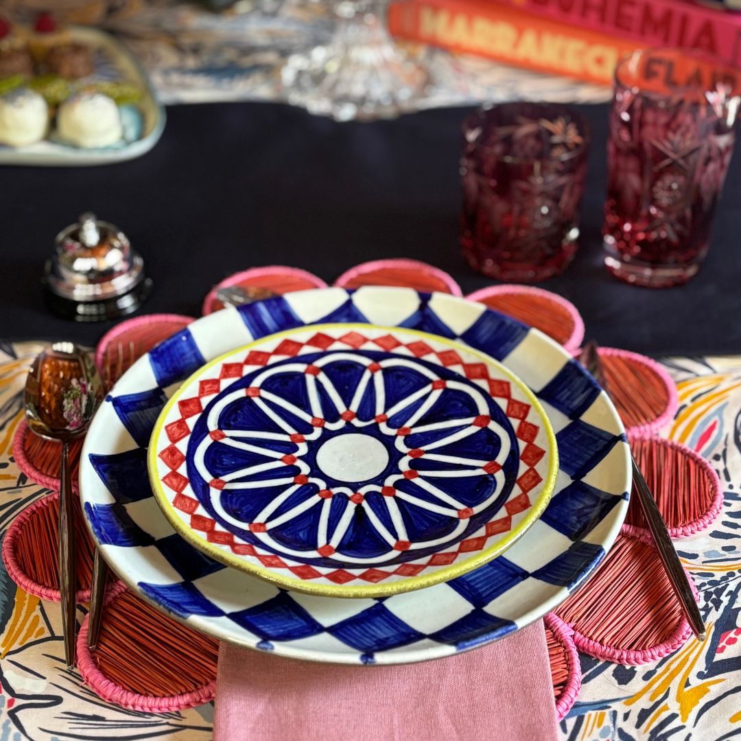 Bold, beautiful, and a little bit unexpected, this dessert plate is all about those stunning zeolite tiles that adorn Dar El Bacha. With its geometric pattern and pop of color, it’s a delightful addition to your dessert spread.